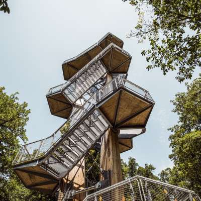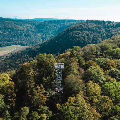 Tels des feux d'altitude, les robustes tours périphériques en fer, en acier et parfois en bois semblent se saluer majestueusement par-dessus les têtes des plus grands arbres et des dizaines de kilomètres de paysage. La plus haute de ces plateformes d'observation disséminées dans le canton se trouve à Merishausen. Avec ses 40 mètres de hauteur propre et ses 225 marches en treillis, la Hagenturm culmine à près de 1000 mètres au-dessus du niveau de la mer. Comme ses "petits" frères de Beringen, Schleitheim et Siblingen, elle n'est pas destinée aux personnes ayant le vertige. En haut, un panorama fabuleux attend les visiteurs, de la Forêt-Noire aux Alpes.