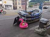 Le tronçon entre Stein am Rhein et Schaffhouse se prête parfaitement à la pratique du Gummiböötle et du stand up paddle. Tu passeras devant des bains de plage pour une pause, de belles maisons et des endroits idylliques au bord du Rhin.