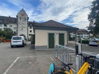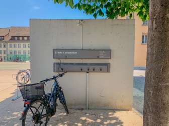 La station de recharge est située au centre de la vieille ville de Schaffhouse, sur le Herrenacker.