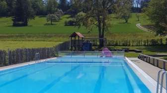 Notre piscine familiale est située dans un cadre idyllique en bordure du village, juste en dessous de l'église Saint-Othmar. La piscine dispose d'une zone pour nageurs et non-nageurs ainsi que d'une pataugeoire spacieuse pour les plus jeunes visiteurs de la piscine avec un voile solaire.