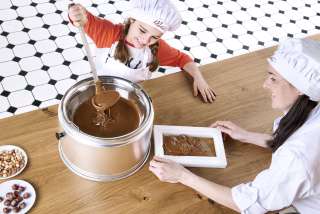 La visite peut ensuite être complétée par un souvenir sucré : Une tablette de chocolat Munz frais est coulée par le confiseur du spectacle et peut être décorée à volonté. Chocolarium - le but d'excursion le plus visité de Suisse orientale vous souhaite la bienvenue !