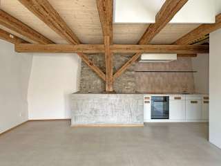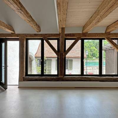 Das Färberhaus gehört zum geschichtsträchtigen Gebäudekomplex aus dem Jahr 1518 und liegt direkt am Rhein im historischen Städtchen Diessenhofen. Heute verbindet die Wohnung historische Architektur mit einem ruhigen, modernen Design.