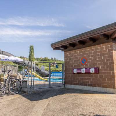 La station de recharge se trouve directement près de la piscine de Hallau.