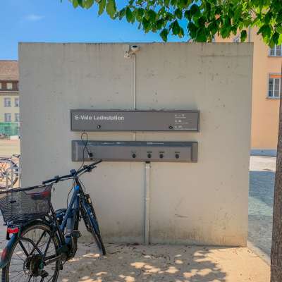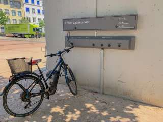 La station de recharge est située au centre de la vieille ville de Schaffhouse, sur le Herrenacker.