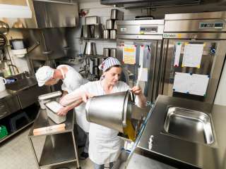 Le laboratoire des glaces se trouve à l'arrière de notre établissement. C'est ici que nous produisons quotidiennement nos glaces, que nous développons de nouvelles recettes et que nous améliorons en permanence les anciennes.