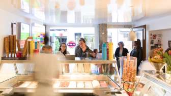 Dans notre petit café d'environ 8 places assises, nous proposons différentes coupes, toutes les sortes de glaces actuelles en portions, du café italien, des limonades, divers spiritueux et de la bière. Au fil des années, ce café aménagé avec soin est devenu un lieu de rencontre pour un public varié.