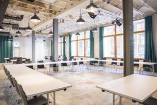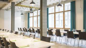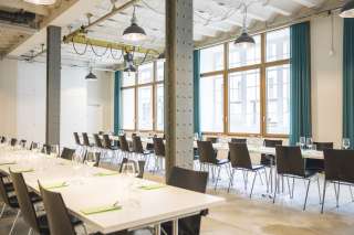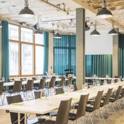 Le lieu de l'événement sur le site de SIG aux chutes du Rhin est à votre disposition pour une utilisation polyvalente. Qu'il s'agisse d'un atelier, d'une AG, d'un séminaire ou d'une fête privée, l'ambiance unique de cette salle au charme industriel et à l'équipement moderne vous séduira. Deux vidéoprojecteurs, un pupitre avec microphone, un flipchart, un tableau blanc et une connexion WLAN sont à votre disposition. Les sièges de la salle sont disposés selon vos souhaits. Pour le catering pendant votre événement, le restaurant Grünerbaum adjacent vous propose une offre variée et répond volontiers à vos souhaits individuels.