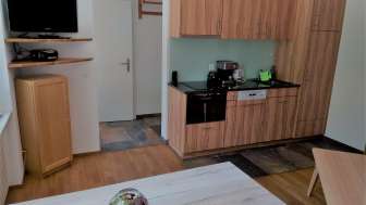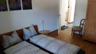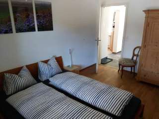 Auf Wunsch bieten wir auch Frühstück an. Die schmucke Wohnung hat alles was es braucht, Küche (mit Backofen, Kaffeemaschine, Wasserkocher), Bad, Schlafzimmer für 2 Personen, Wohn-Esszimmer mit einer Schlafcouch für 2 Personen. Es steht auch ein kleiner, eingezäunter Gartenbereich mit Tisch und Stühlen zur Verfügung.