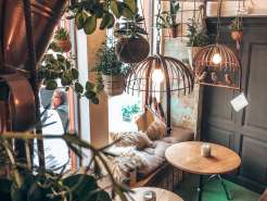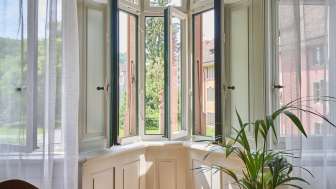 Das Haus «Zum Hinteren Dornhahn» liegt mitten in der Altstadt am Münsterplatz gegenüber dem Kloster Allerheiligen, dem ehemaligen religiösen, kulturellen und herrschaftlichen Zentrum der Stadt Schaffhausen. Es ist eines der typischen mittelalterlichen Bürgerhäuser mit Werkstatt oder Laden im Erdgeschoss und Wohnungen in den Obergeschossen. Die Ferienwohnung befindet sich im ersten Stock mit Blick auf den Mosergarten, nur wenige Gehminuten vom Wahrzeichen der Stadt, dem Munot, und dem beliebten Flussbad entfernt.