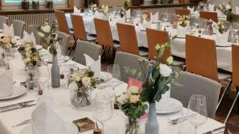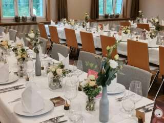 Outre la salle de restaurant avec cheminée, le rez-de-chaussée abrite le Längenbergstübli et l'Angusstübli rustique. Au premier étage, vous trouverez la salle (jusqu'à environ 120 personnes) avec un accès direct à la place d'apéritif et à la grange de fête. C'est également au premier étage que se trouve la salle de séminaire et de réunion.