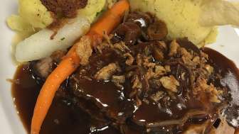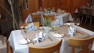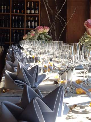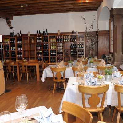 La vénérable salle peut accueillir jusqu'à 100 personnes. L'équipe de cuisine et de service vous gâte avec des délices de la région. Le grand choix de vins de Schaffhouse proposé dans le restaurant est unique en son genre.
