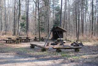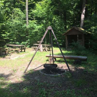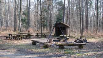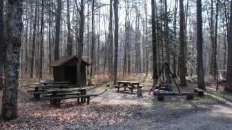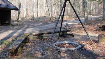 Le vaste espace barbecue sur le Längenberg offre de nombreuses possibilités de s'asseoir, un foyer et une petite cabane en bois.