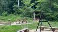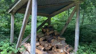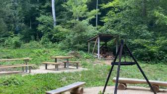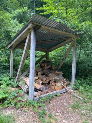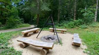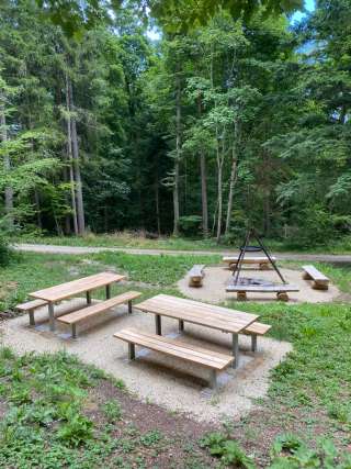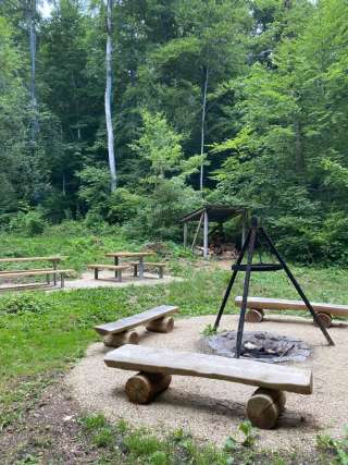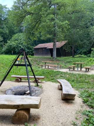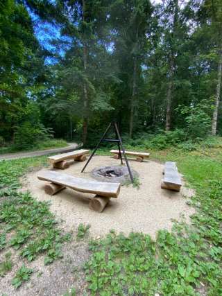 Le beau foyer et deux tables invitent à faire des grillades et à pique-niquer. Avec un peu de chance, il y a même du bois sur place.