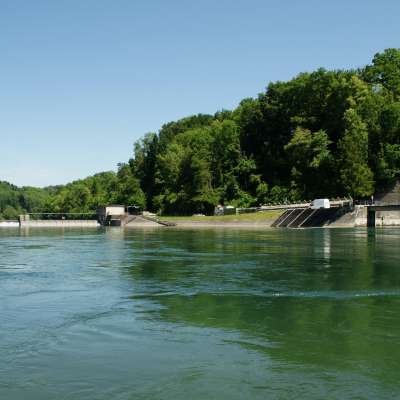 En aval de la centrale électrique de Rheinau se trouve une aire de barbecue située sur la rive.