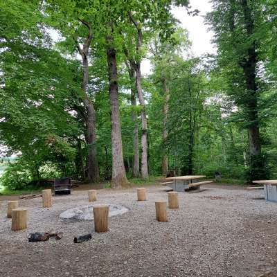 La grande place de grillades de la forêt de Buchthaler dispose de nombreux sièges, de foyers et d'un abri.