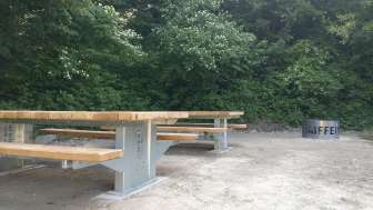 L'espace barbecue de Mogerenacker comprend un foyer et diverses possibilités de s'asseoir.