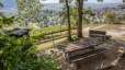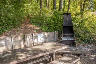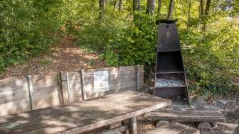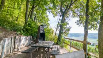 Elle est équipée d'un foyer couvert et d'une table avec deux bancs ainsi qu'un banc pour profiter de la vue.