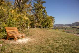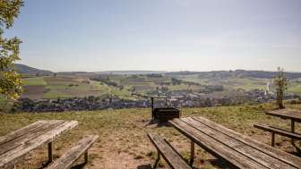 Le vaste espace barbecue, situé sur le côté gauche de la vallée, offre une vue magnifique sur le village de Schleitheim.