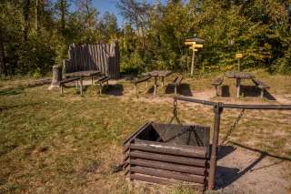 Un foyer ainsi que quatre tables avec des bancs en font un lieu de grillade parfait pour les groupes. De plus, il y a du bois de chauffage sur place (sans garantie).