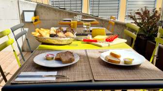 Chez nous, vous pouvez passer la nuit et savourer un super petit-déjeuner avec des produits régionaux et bio.