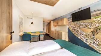 Das Hotel sleep&stay ist ein modernes Designhotel im self-check-in System, welcher ermöglicht, dass Sie zeitlich uneingeschränkt am Automaten einchecken können. Unsere Zimmer sind je 27m2 gross.