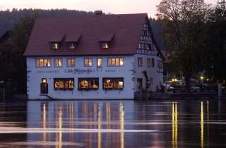 Là, au milieu d'un paysage magnifique et à l'ombre de grands châtaigniers, il est possible de se restaurer et de loger de manière excellente. "L'Alte Rheinmühle est l'endroit idéal pour emmener les visiteurs dans un monde de rêve pendant quelques instants. Ici, nous vivons pour que nos hôtes ne s'arrêtent jamais de rêver, pas un seul instant", souligne l'hôte Andreas Fischer.