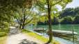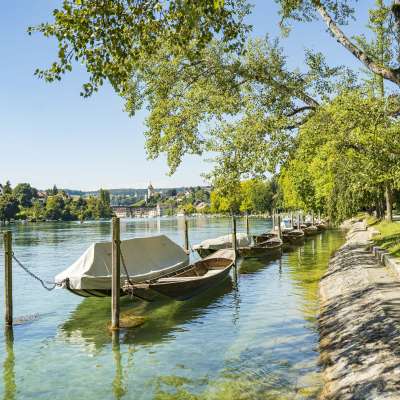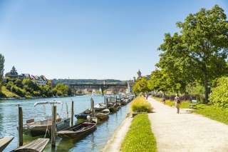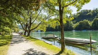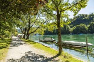La promenade de Schaffhouse se trouve directement au bord du Rhin. Sous les arbres ombragés, on y rencontre par beau temps des couples et des familles avec enfants.