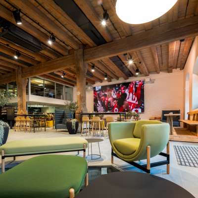 Diverses possibilités d'échanger entre eux, mais aussi avec d'autres "cercles" dans une atmosphère décontractée - sport et culture, économie et politique, sport ou culture "entre soi". Les quelque 60 places du bistrot sont très variées - des tables traditionnelles pour deux hôtes ou plus, des tables hautes qui peuvent aussi servir de bar ou de poste de travail, un coin avec des groupes rembourrés de différentes sortes, les "tables d'habitués" en vieux chêne et plusieurs "séparations" pour des entretiens confidentiels, des présentations ou des négociations invitent à s'attarder. Sur le mur LED d'environ 20 m2 de la plus haute qualité, on peut lire le journal en ligne Bock 24 et Schaffhausen 24 avec des nouvelles de la région, de la Suisse et du monde entier. Des clubs sportifs de premier plan gèrent ensemble leur fan shop ; les billets et les cartes de saison peuvent être achetés facilement 24 heures sur 24 au centre-ville. Les sportifs des disciplines les plus diverses se rencontrent, sont en contact avec les supporters de "notre petite ville". Sans oublier l'offre de coworking :