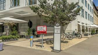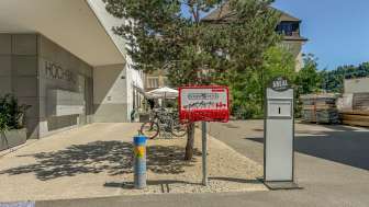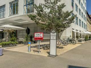 Sur la place industrielle en amont des chutes du Rhin, il y a une pompe à vélo publique ainsi que des outils.