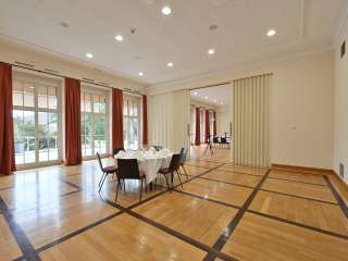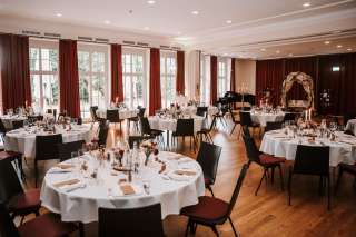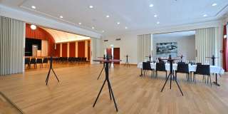 Faire la fête, se réunir et se rencontrer. Le lieu événementiel, avec son concept d'espace flexible comprenant 4 salles, une scène, un foyer, une terrasse et un grand jardin, offre l'ambiance idéale pour des manifestations de toutes sortes et de toutes tailles. De 30 à 350 personnes peuvent être accueillies dans plus de 600 m2 d'espace. Pour l'assemblée générale, la réunion d'affaires, l'exposition d'art, la remise de diplôme ou la célébration d'un mariage. Grâce à la rénovation complète, le charme historique rencontre ici une infrastructure événementielle moderne. Technique de pointe, climatisation et mobilier contemporain. L'offre culinaire adaptée à chaque événement est proposée, des petits amuse-bouches au dîner de gala à plusieurs plats.