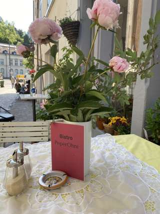 C'est avec plaisir que nous vous accueillons dans notre local confortable, aménagé avec soin, ainsi que sur notre terrasse. PeperOhni se trouve dans la charmante Webergasse, dans la vieille ville de Schaffhouse. Notre offre comprend des spécialités de café et de thé, des plats et des gâteaux de saison faits maison, des paninis, des antipasti, des boissons rafraîchissantes pétillantes, des bières régionales, des vins et des boissons apéritives. Soyez les bienvenus !
