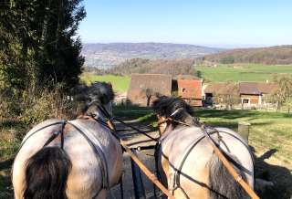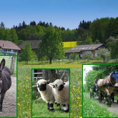 Chevaux, ânes, moutons à nez noir du Valais, porcs Kune-Kune et chats font de la ferme un lieu vivant où l'on peut vivre l'agriculture de près. Les enfants peuvent étriller les ânes, se promener avec eux dans la forêt ou aider à s'occuper des animaux. Les moutons laineux se laissent volontiers câliner, tandis que les cochons garantissent des moments de gaieté. Une expérience particulière est une promenade en calèche avec les imposants chevaux à sang froid, qui ouvre des vues impressionnantes.