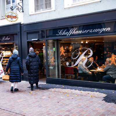 C'est ici que sont fabriquées depuis 1896 les langues originales de Reber Schaffhausen et d'autres spécialités exceptionnelles. En outre, nous vous gâtons avec du café, du thé et de délicieux gâteaux ou à l'heure du déjeuner - en été, nous vous accueillons volontiers sur notre terrasse.