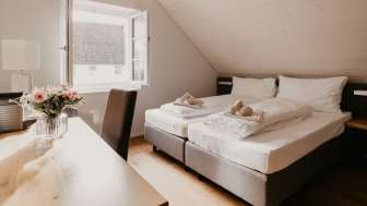 Vous pouvez également passer la nuit à l'Augarten. Nous disposons de trois chambres d'hôtes modernes et accueillantes, à proximité immédiate de la magnifique île du monastère.