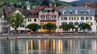 Von unseren Zimmern können Sie den fantastischen Blick auf das Wasser geniessen, dort wo der Bodensee in den Rhein mündet. Von dem mittelalterlichen Städtchen mit den weltberühmten Fassaden sind es 2 Minuten zu Fuss bis zu unserem Hotel. Das Kursschiff, welches sie auf die Reise zu den imposanten Rheinfällen mitnimmt, legt 50 Meter vom Hotel ab.