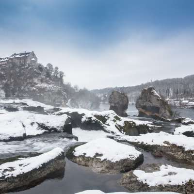 Sur une largeur de 150 m, 700'000 litres d'eau se jettent chaque seconde avec fracas sur une falaise de 23 m de haut. L'ascension de la falaise fait partie, avec la promenade en bateau dans le bassin des chutes du Rhin, des expériences inoubliables de chaque visiteur.