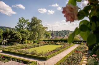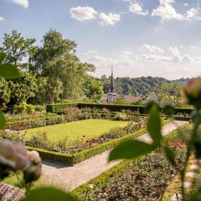 La roseraie se trouve juste à côté du Munot. Le jardin s'étend sur une superficie d'environ 2 000 mètres carrés et compte environ 170 variétés de roses.