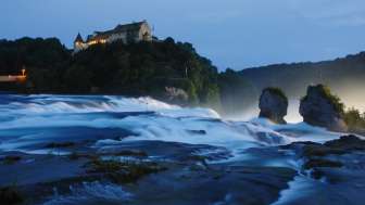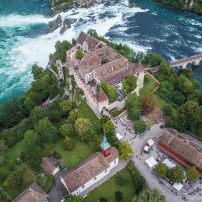 La vue sur les chutes tumultueuses du Rhin et les murs historiques du château vieux de 1200 ans, inscrit au patrimoine culturel du canton de Zurich, sont impressionnants.