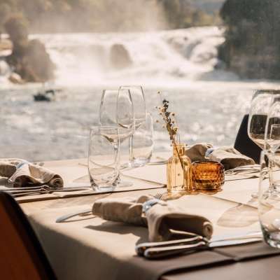 L'offre dans le Schlössli avec la meilleure vue sur les chutes du Rhin. Par beau temps, vous pouvez également profiter de la terrasse. Notre carte propose de délicieux classiques à la carte, une carte de midi variée et des plats de saison.