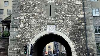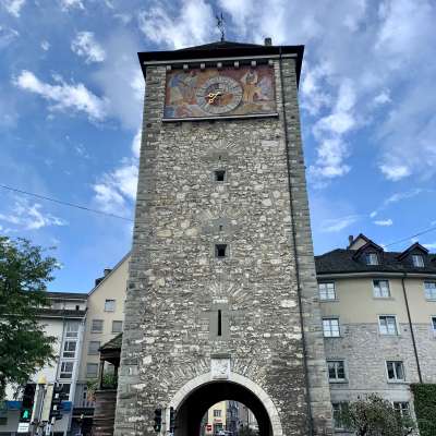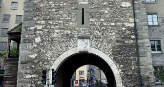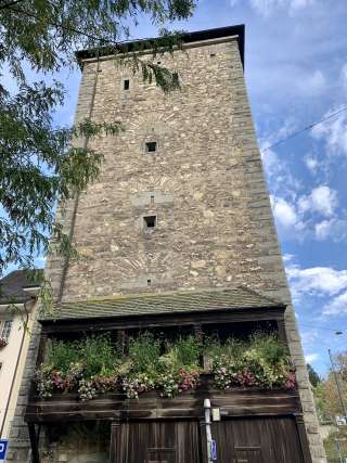 La porte Schwabentor la vieille ville de Schaffhouse, a été mentionnée pour la première fois dans un document officiel en 1361 sous le nom de « Neuturm ». Elle constituait l'extrémité nord des fortifications médiévales de la ville contre les Souabes.