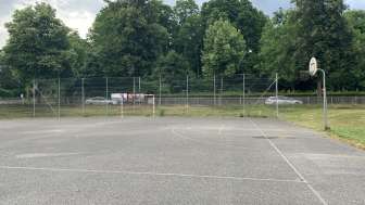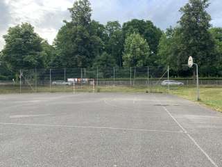 Il y a également un terrain en dur avec des paniers de basket et des buts de football.