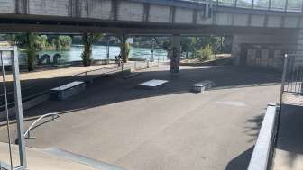Ce skatepark se trouve directement au bord du Rhin, près du pont de l'autoroute N4.