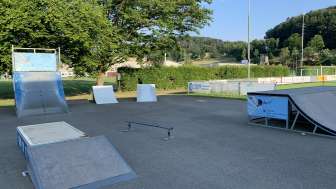 Le skatepark de Thayngen, petit mais bien aménagé, offre des obstacles pour essayer des tricks sympas.