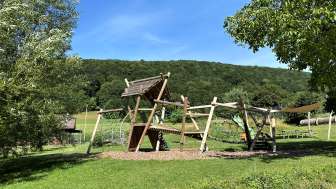 Une structure d'escalade, un toboggan, des animaux à bascule, un tunnel et d'autres jeux font battre le cœur des enfants. Il y a également une table de pique-nique pour pique-niquer.