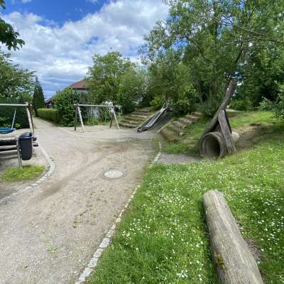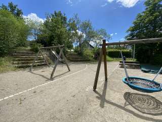 Aire de jeux avec de nombreux éléments de jeux passionnants pour tous les âges : surface de sable, tunnel, balançoires, toboggan, zone d'équilibre et bien plus encore.