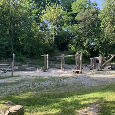 Les enfants, petits et grands, peuvent vraiment se défouler sur l'aire de jeux du complexe Dreispitz. L'installation généreuse est entourée de beaucoup de verdure. L'aire de jeux est équipée d'une tyrolienne, d'un toboggan, d'un étang, d'une fontaine avec un cours d'eau et d'une grande zone de jeux de sable. Il y a également une aire de pique-nique avec des sièges et un foyer à proximité de l'aire de jeux.