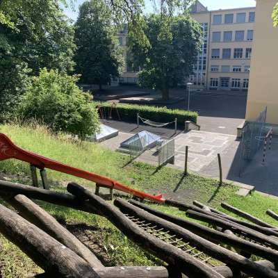 Neben einer Kletterstruktur und einer Rutschbahn hat es eine Hängematte und Schaukel. Auf dem Schulareal hat es zusätzlich einen Fussball-Hartplatz, Basketball-Hartplatz und Ping Pong Tische.