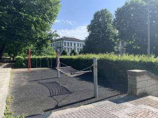 Petite place de jeux urbaine, derrière le complexe scolaire Gega, qui offre également des possibilités de jeux aux enfants plus âgés.