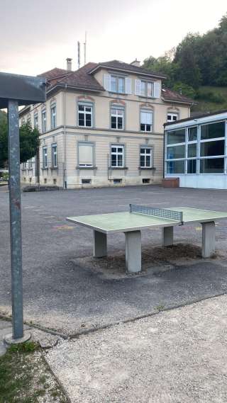 Der Spielplatz im Dorfkern von Hemmental liegt direkt beim Schulhaus. Neben einem Klettergerüst, einer Schaukel, einer Wippe und einem Ping Pong Tisch hat es auch einen Hartplatz mit Basketballkorb und einem Fussballplatz.