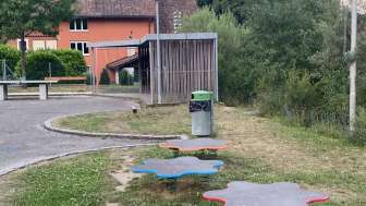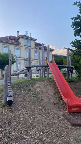 L'aire de jeux au centre du village de Hemmental se trouve directement à côté de l'école. En plus d'une structure d'escalade, d'une balançoire, d'une bascule et d'une table de ping-pong, elle dispose d'un terrain en dur avec panier de basket et d'un terrain de football.